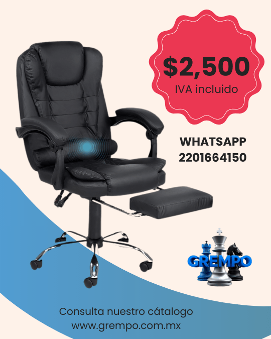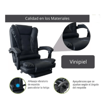 Silla ejecutiva ergonómica para oficina con masajeador de espalda reposapiés, altura ajustable y reclinable en color Negro
