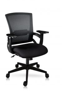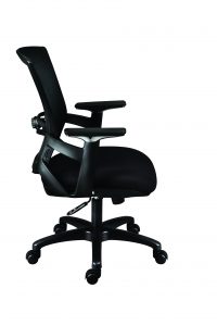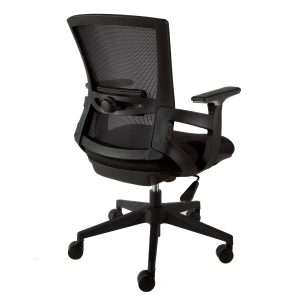 Respaldo con marco de polipropileno tapizado con malla y riñonera ajustable con perilla. Brazos con coderas en polipropileno ajustables de 180°. Asiento tapizado en tela mesh con espuma de 6cm x 27kg/m3. Mecanismo ejecutivo con palanca para ajuste de altura, bloqueo/desbloqueo de reclinamiento y perilla de tensión. Pistón neumático. Base de nylon pentagonal con rodajas en nylon de 50mm.
