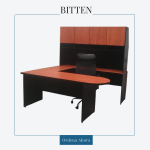 Conjunto ejecutivo. Fabricado en melamina de 16 mm, color a elegir. Con canto de PVC. Se compone de escritorio de bala con faldón, lateral rectangular, credenza sin cajonera y librero de sobre poner, que consta de cuatro puertas abatibles. Dimensiones: 180 x 230 x 75 cm