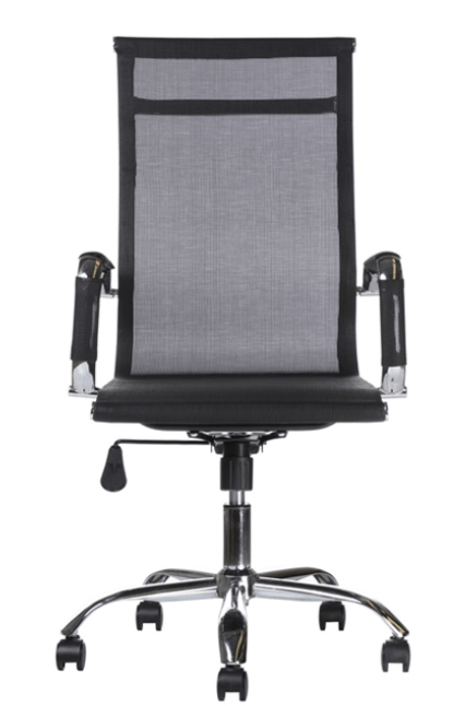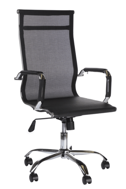 Respaldo y Asiento con Marco metálico cromado de alta calidad calibre 16 y tapizado en mesh color negro, Base: estrella de 5 puntas en nylon reforzado con cubierta de lámina de acero terminada en cromo y con rodajas tipo dual y/o regatones. Elevación: por medio de pistón neumático que permite ajustar la altura del asiento.