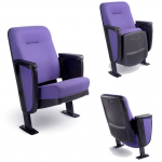 Esta butaca tiene un ancho ajustable entre 53 y 55 cm, con una altura de 82 cm, profundidad de 43 cm (cerrada) a 60 cm (abierta), y el asiento a 45 cm de altura. Su estructura central, preparada para fijar el asiento, es de acero calibre 18 con acabado en pintura electrostática, adaptable tanto a instalación en voladizo como directamente al suelo. El asiento y el respaldo constan de dos partes de polipropileno de alto impacto, con superficies de poliuretano tapizadas y un mecanismo que se abate automáticamente por gravedad. La tapicería está disponible en telas de polipropileno o acrílico. Los brazos y laterales se fabrican en triplay de 18 mm con formica, cortados con precisión mediante router CNC. Entre los accesorios opcionales se incluyen brazos abatibles, personalización con letras, números y bordados.