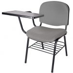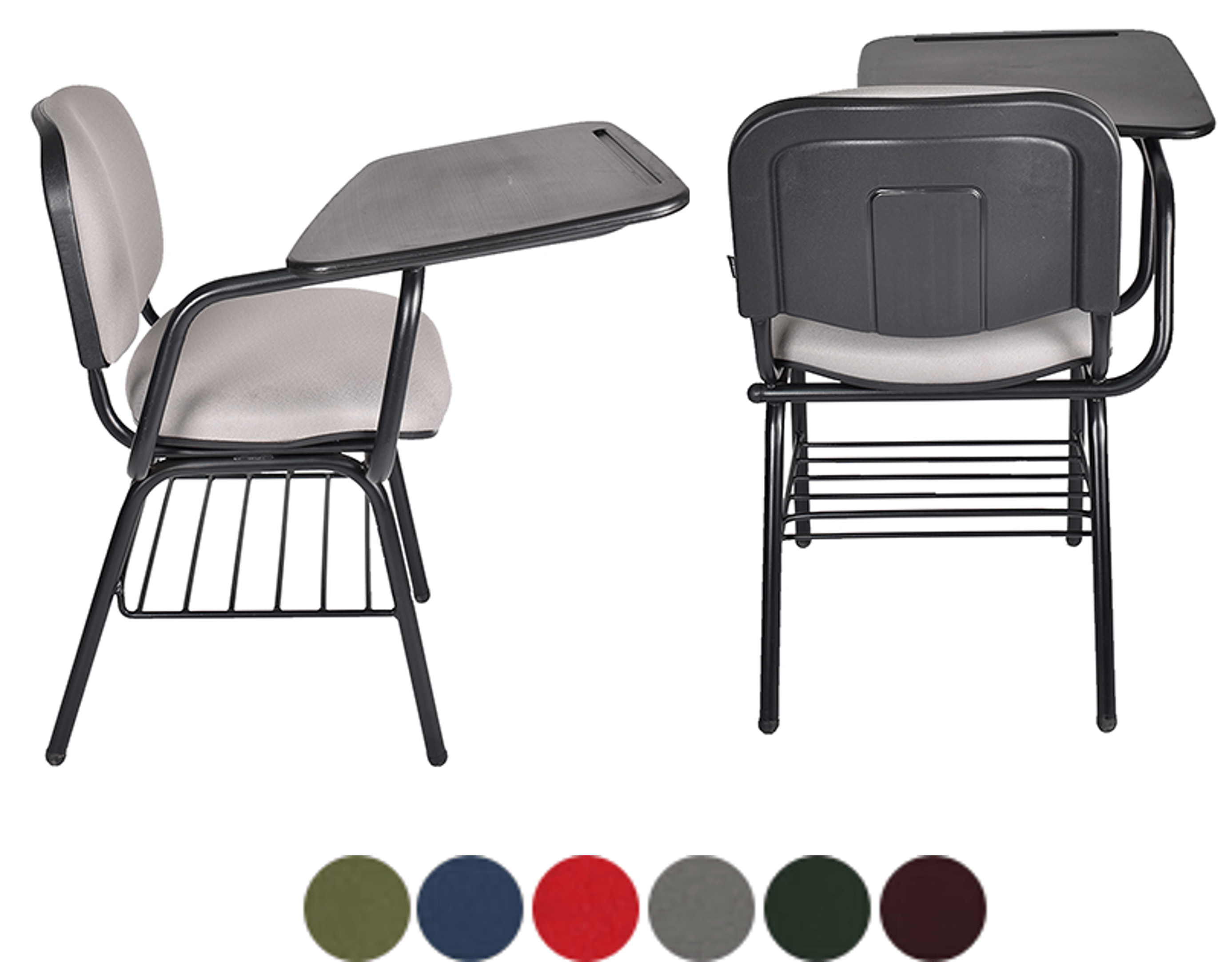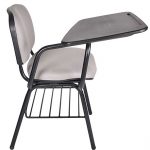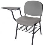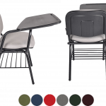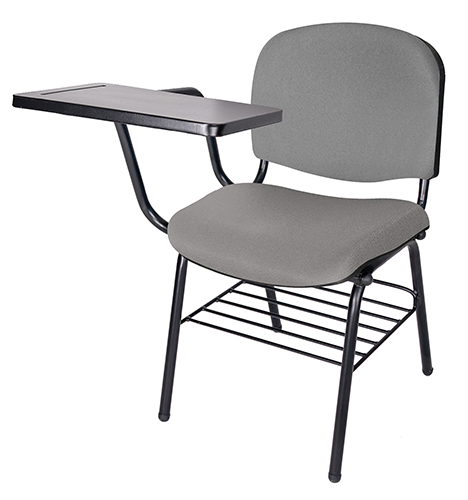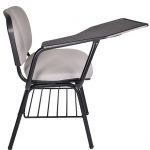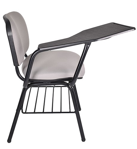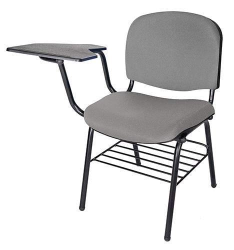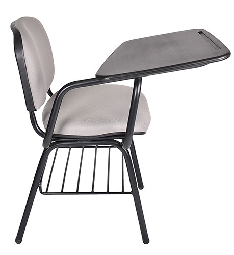 La estructura está fabricada con tubos de acero de 1″ de diámetro y calibre 18, con un recubrimiento de pintura epóxica en color negro. La parrilla está compuesta por perfiles redondos de acero pulido. El respaldo y asiento están rellenos de hule espuma laminada flexible, ofreciendo una alta resilencia. El tapizado es personalizable en el color que elija. La paleta está elaborada en lámina de acero troquelado, presentando una ceja perimetral. La silla puede resistir un peso máximo de hasta 150 kgs.