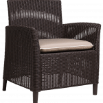 Mobiliario elaborado con polipropileno de gran durabilidad y resistencia, apto para su uso tanto en exteriores como en interiores, preparado para resistir los efectos de la intemperie, los rayos ultravioleta (UV) y ambientes salinos, con un acabado que simula la textura del rattán. El asiento cuenta con un acolchado realizado con hule espuma laminado flexible, que tiene una densidad de 27 kgs/m³ y proporciona una alta resistencia. Este mueble tiene una capacidad máxima de carga de 180 kgs