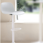 La base consta de un plato redondo de lámina de acero calibre 18 y un pedestal tubular de acero redondo de 3″ calibre 18. La elevación se realiza mediante un pistón neumático extralargo de clase 3, que permite ajustar la altura del asiento. El mecanismo incluye un plato de acero reforzado con palanca de bloqueo y descansapies. Tanto el respaldo como el asiento están fabricados en una sola pieza de termoplástico polimerizado en polipropileno de alta densidad. Puedes elegir entre los colores blanco, celeste con blanco o negro. La capacidad máxima de carga es de 100 kgs.