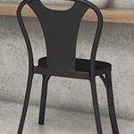 El respaldo, el asiento y las patas conforman una única estructura fabricada en polipropileno, destacándose por su alta resistencia y durabilidad para resistir condiciones climáticas adversas, incluyendo la resistencia a los rayos ultravioleta (UV) y al ambiente salino. La silla está disponible en colores negro y rojo, con una capacidad máxima de resistencia de 150 kilogramos.