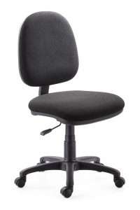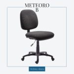 Respaldo y asiento medio tapizado en tela. Mecanismo secretarial fijo con palanca para ajuste de altura. Pistón neumático secretarial. Base de nylon con rodajas de nylon.