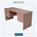 Escritorio Ejecutivo mod. Milenium Con cajonera doble (cajón tipo lapicero y cajón tipo archivo) Fabricado en melamina de 16 mm, canto de PVC. Color a elegir. Con faldón y niveladores Dimensiones: 150 x 60 x 75 cms