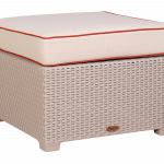 Asiento de banco fabricado en polipropileno de alta durabilidad y resistencia, apto para uso tanto en exteriores como interiores, siendo resistente a los efectos de los rayos ultravioleta (UV) y a condiciones salinas. Presenta un acabado que simula el mimbre. El asiento está acolchado con hule espuma laminado flexible de 27 kgs/m3 de densidad y alta resilencia. La capacidad máxima de carga es de 180 kgs.