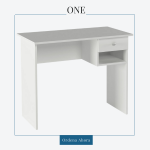 Escritorio mod. One Fabricado en melamina de 16 mm, con canto en PVC. Color a elegir. Con cajonera y gaveta abierta. Con niveladores y faldón. Dimensiones: 100 x 50 x 75 cm