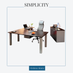 Escritorio en “L” mod, Simplicity Cubierta fabricada en melamina de 16 mm, con canto de PVC y niveladores. Patas metálicas cuadradas Con pedestal de 2 cajones, 1 lapicero y 1 de archivo Dimensiones 160 x 150 x 75 cms”