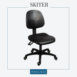 Asiento y respaldo de poliuretano inyectado. Base estrella de polipropileno con rodajas. Mecanismo con 2 palancas, 1 para ajuste de altura y 1 para ajuste de reclinamiento del respaldo.