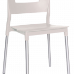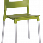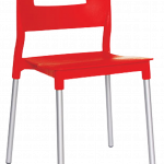 Las patas están construidas con aluminio tubular de 1″ de diámetro y calibre 16, presentando un acabado natural. Tanto el asiento como el respaldo forman una única pieza fabricada en polipropileno, caracterizada por su alta resistencia y durabilidad ante las inclemencias climáticas, siendo resistente a los rayos ultravioleta (UV) y al ambiente salino. La silla está disponible en colores olivo, blanco y rojo, y cuenta con una capacidad máxima de resistencia de 100 kilogramos.