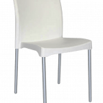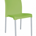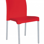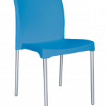 Las patas están fabricadas con aluminio tubular de 1″ de diámetro, con un grosor de calibre 16, y presentan un acabado natural. Tanto el asiento como el respaldo forman una unidad única elaborada en polipropileno de alta resistencia y durabilidad, diseñado específicamente para soportar las inclemencias del clima, incluyendo la resistencia a los rayos ultravioleta (UV) y la exposición al ambiente salino. La silla está disponible en varios colores como blanco, verde, negro, naranja, rojo y azul, con una capacidad máxima de resistencia de 100 kilogramos.