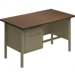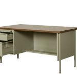 La mesa está fabricada con aglomerado de madera, recubierto con melamina. Los pedestales tienen dimensiones de 41.4 x 47.8 x 58 cm y están hechos de lámina rolada en frío calibre 22, con refuerzos troquelados para correderas sencillas calibre 18. La gaveta papelera tiene dimensiones de 8 x 34.3 x 55.5 cm, con corredera sencilla y aro multiperforado. El faldón frontal, que cubre los pedestales, está fabricado con lámina rolada en frío calibre 22. La gaveta de archivo tiene dimensiones de 16.7 x 34.3 x 55.5 cm y cuenta con corredera sencilla y ruedas metálicas. Las patas son de perfil cuadrado calibre 18 de 1″ y 1¼” con regatón y tornillo nivelador de polipropileno. Los separadores tienen dimensiones de 12×35.5 cm y están fabricados con lámina rolada en frío calibre 22. La caja lapicera está fabricada con poliestireno de mediano impacto. Todos los componentes son tratados con fosfatos para prevenir la corrosión y recibir una capa de pintura esmalte alquidálico horneada a 140°C. Las dimensiones totales son Alto 75 cm, Ancho 120 cm y Profundo 75 cm.