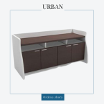 Material: Melamina de 16mm, con cinta PVC, niveladores de polipropileno. Se compone: 4 puertas abatibles con jaladeras metálicas, 1 entrepaño interno por cada par de puertas, cubierta en desnivel, 3 espacios entre cubierta y puertas. Dimensiones: 160 x 40 x 75 cms.