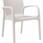 El respaldo, asiento y patas están fabricados como una única unidad de polipropileno, diseñado para resistir las inclemencias del tiempo y condiciones exteriores, incluyendo la exposición a rayos ultravioleta (UV) y ambientes salinos. Puedes elegir entre diferentes colores como chocolate, blanco, cappuccino, negro y camel. La capacidad máxima de carga es de 130 kgs.