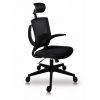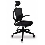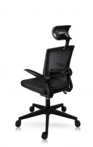 Respaldo tapizado en malla con almohadilla lumbar ajustable. Cabecera tapizada en malla. Brazos plegable en polipropileno. Asiento tapizado en tela mesh con espuma estándar.
